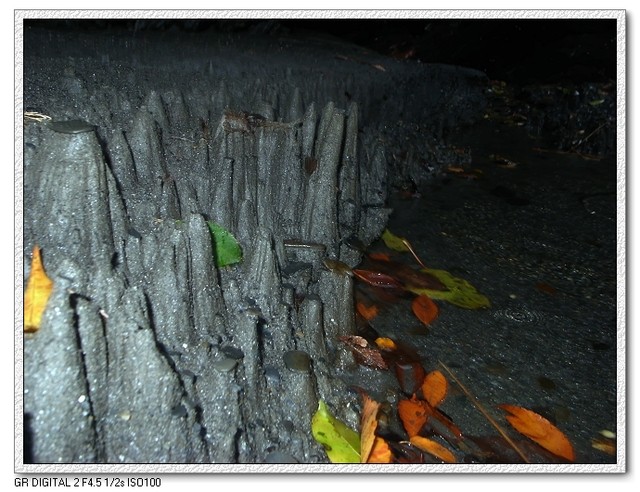 有石子的表面則形成保護傘,久了變形成筍子的形狀~