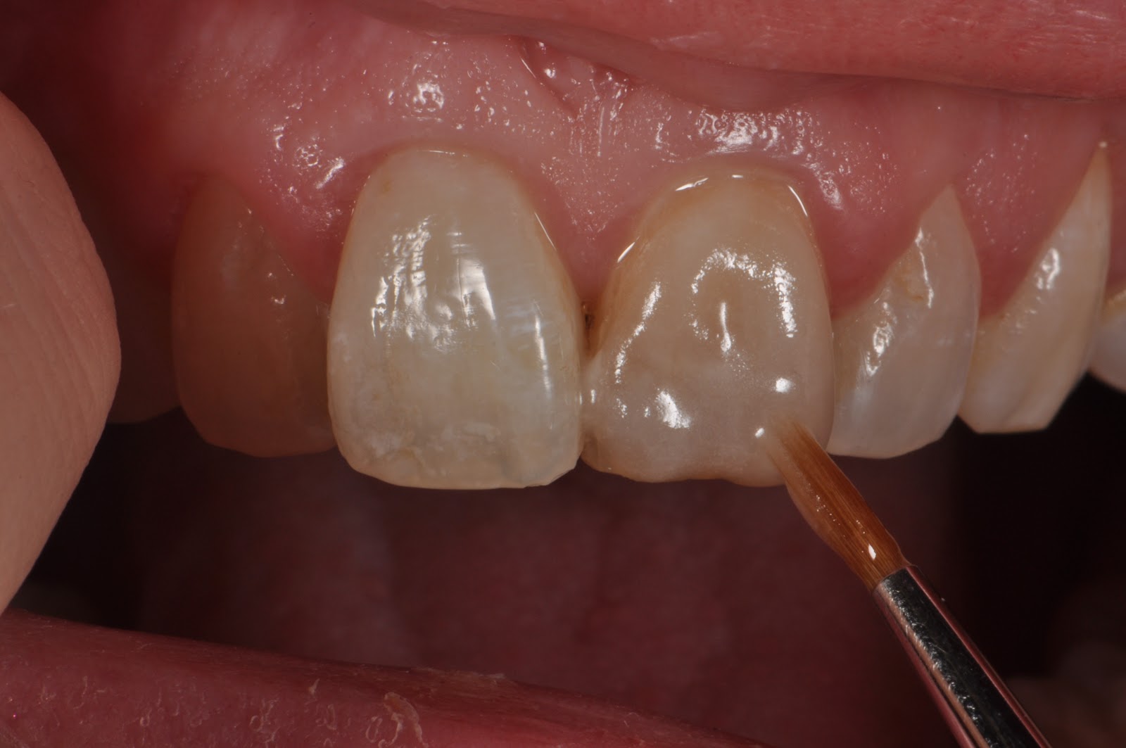 Feldspathic veneer with discolouration abutment.